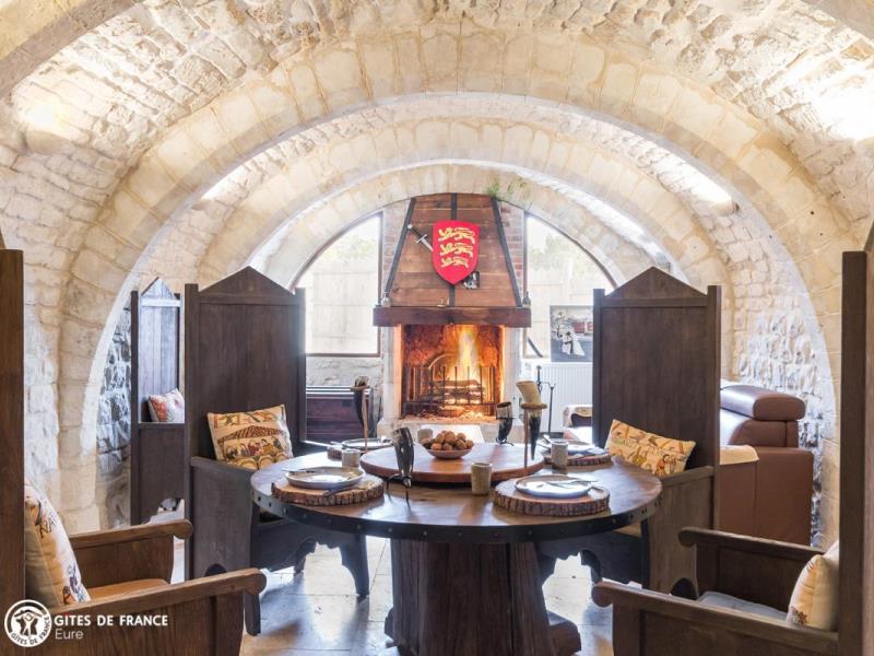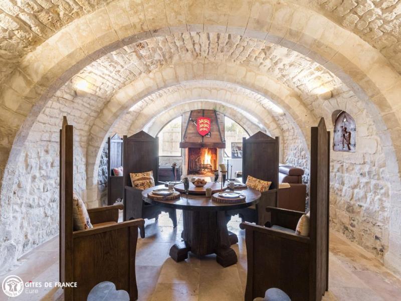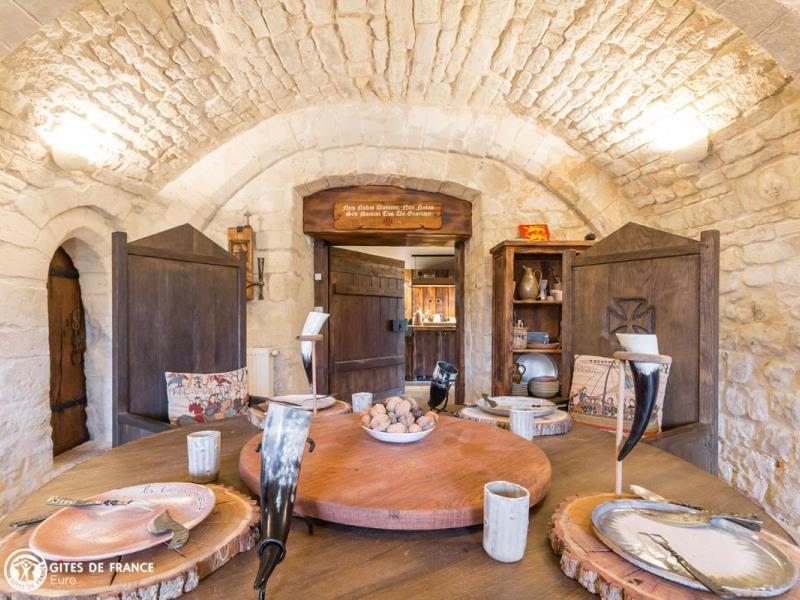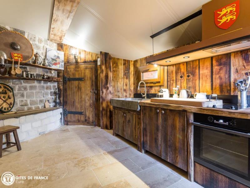Le gîte est de plein pied, la cuisine en pierres et bois est bien équipée, la pièce de vie se situe dans la salle d'armes où vous adorerez dîner près d'une belle flambée.
