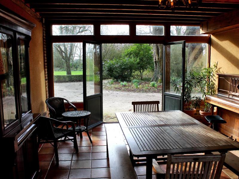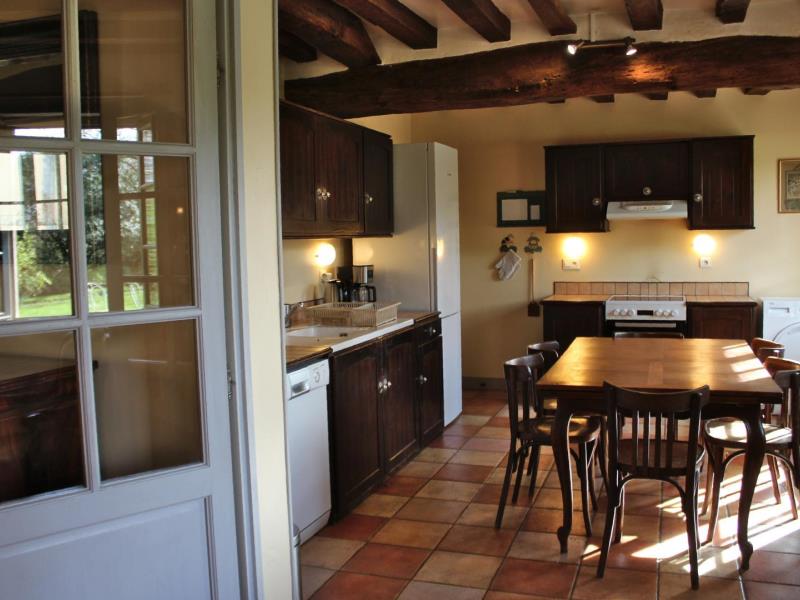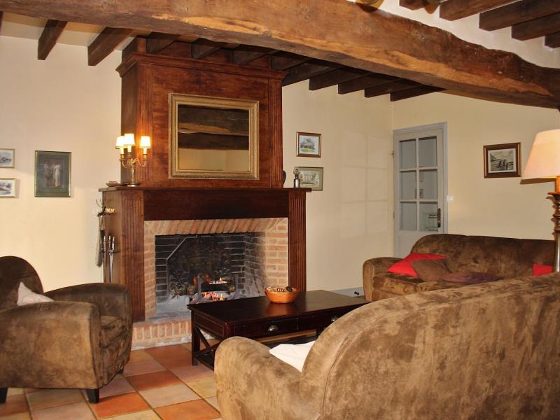 Grand séjour très chaleureux avec le salon devant la cheminée et le coin repas confortable. Cuisine équipée, pièce de jeux ou salon d'été avec piano.